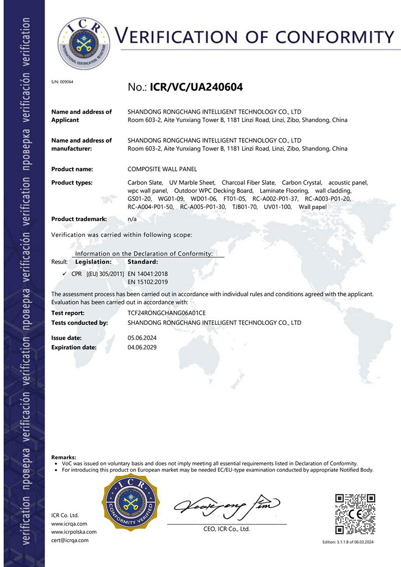 Shandong Rongchang Intelligent Technology Co., Ltd. is a leading manufacturer specializing in both interior and exterior decorative panels. With a decade of industry expertise and a modern production facility spanning 30,000 square meters, we operate over 100 advanced production lines dedicated to innovation, quality, and reliability.